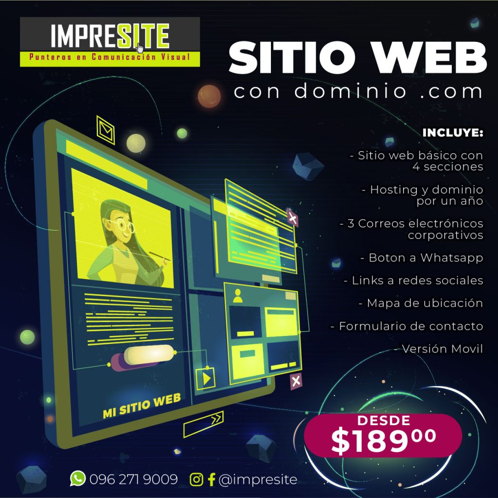 En IMPRESITE ofrecemos soluciones de diseño web personalizadas que capturan la esencia de tu marca y atraen a tu audiencia objetivo. Creamos navegaciones intuitivas y atractivas que garantizan una experiencia de usuario inigualable. Estamos aquí para ayudarte a medida que tu negocio crece y evoluciona, ofreciendo soporte y mantenimiento continuo. Da el primer paso hacia un sitio web que realmente refleje tu visión y valores.